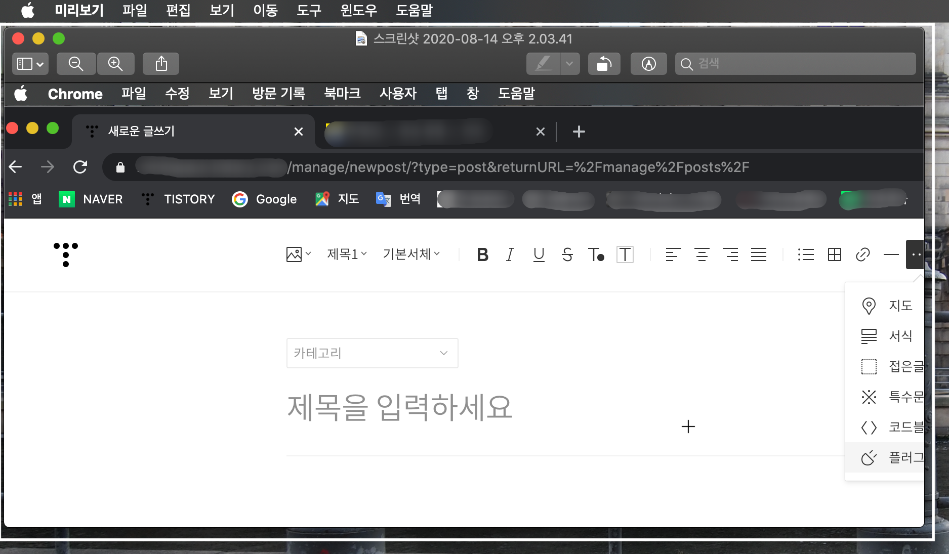 저는 스크린샷과 간단한 표기 정도 하는 티스토리 설명글은 미리보기만으로 작업하고 있습니다.