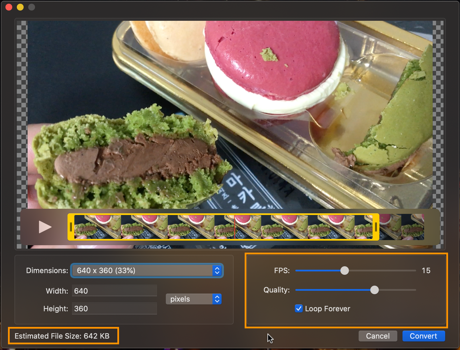 왼쪽 하단에 보면 642KB라고 되어있지요? 예상 GIF 용량입니다.