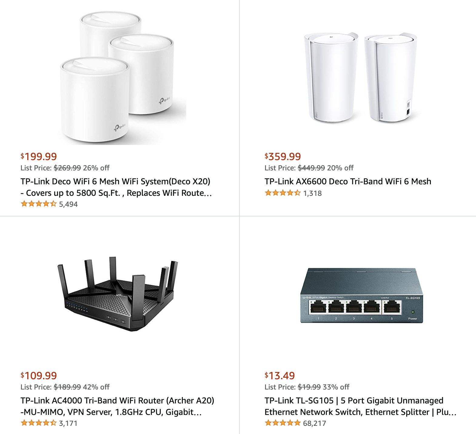 7. 공유기: 고급형 공유기도 세일을 많이 하고 있습니다. 현재 TP링크 제품들이 100달러까지도 할인이 들어가고 있고요, 기타 주변기기들도 꽤나 저렴하기 때문에 교체주기가 되셨다면 하나 구매하시는 것도 좋을 듯합니다.