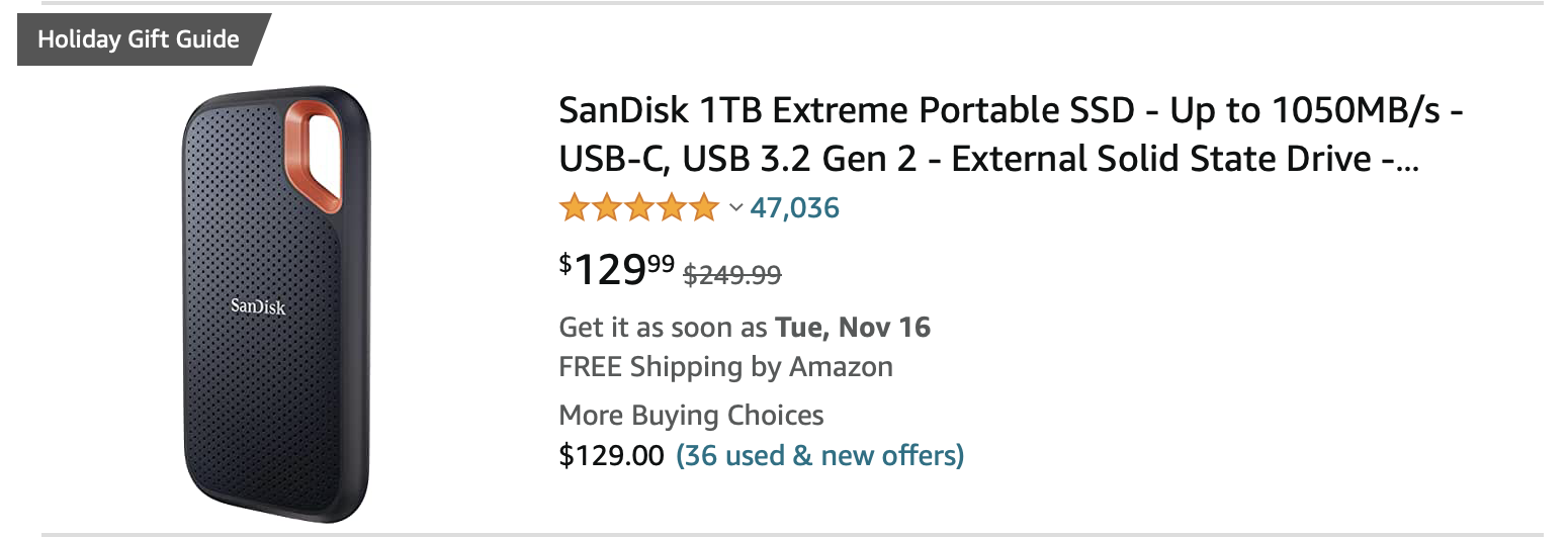 4. SSD: 삼성, SK 하이닉스에서 나온 SSD도 현재 거의 반값 세일 중입니다. 늘 생각하지만 아마존 블프 때 사는 게 제일 현명해요.