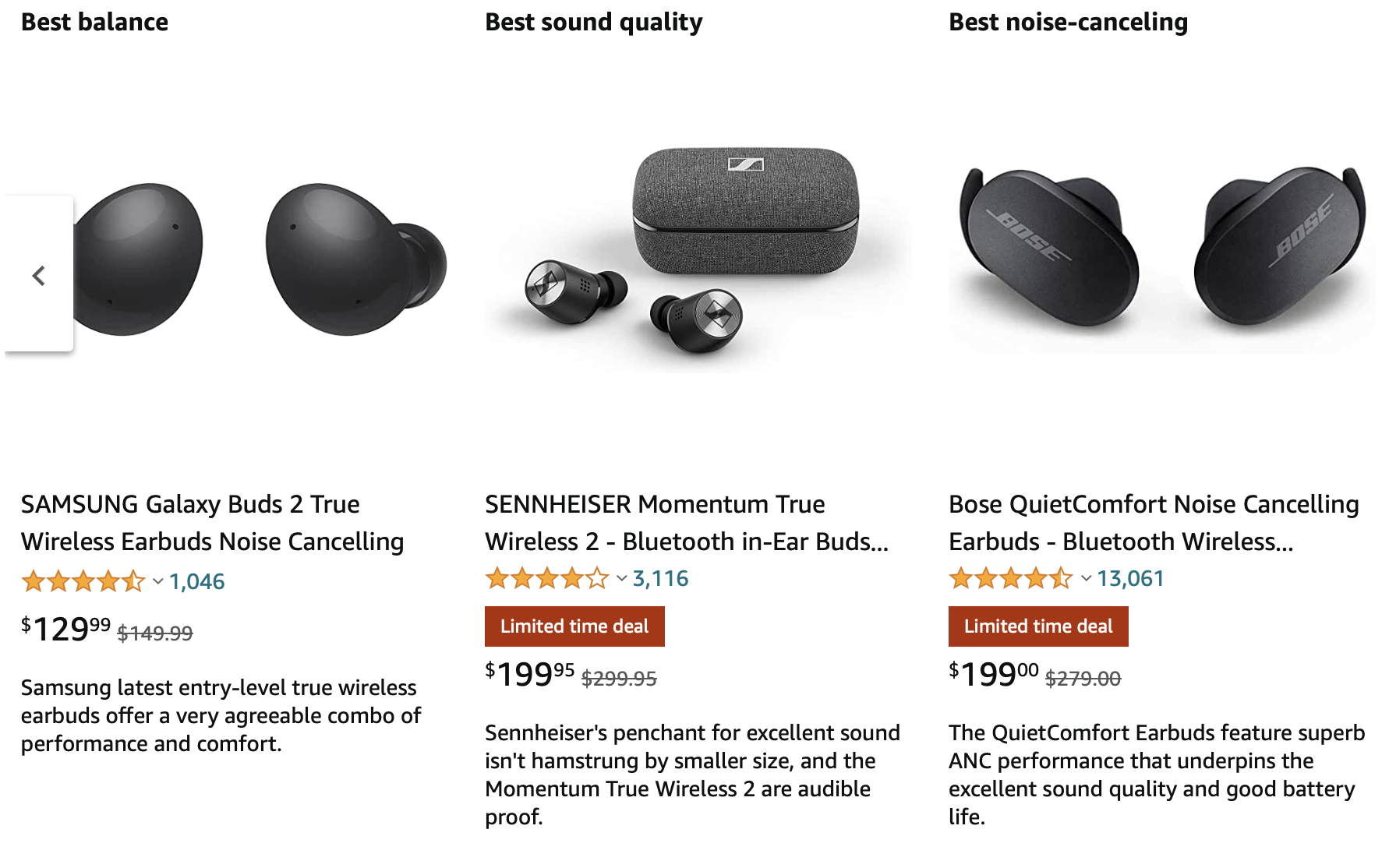 4. 무선이어폰류: 젠하이저나 보스 제품은 100달러 가까이 기간 한정 세일 중입니다.