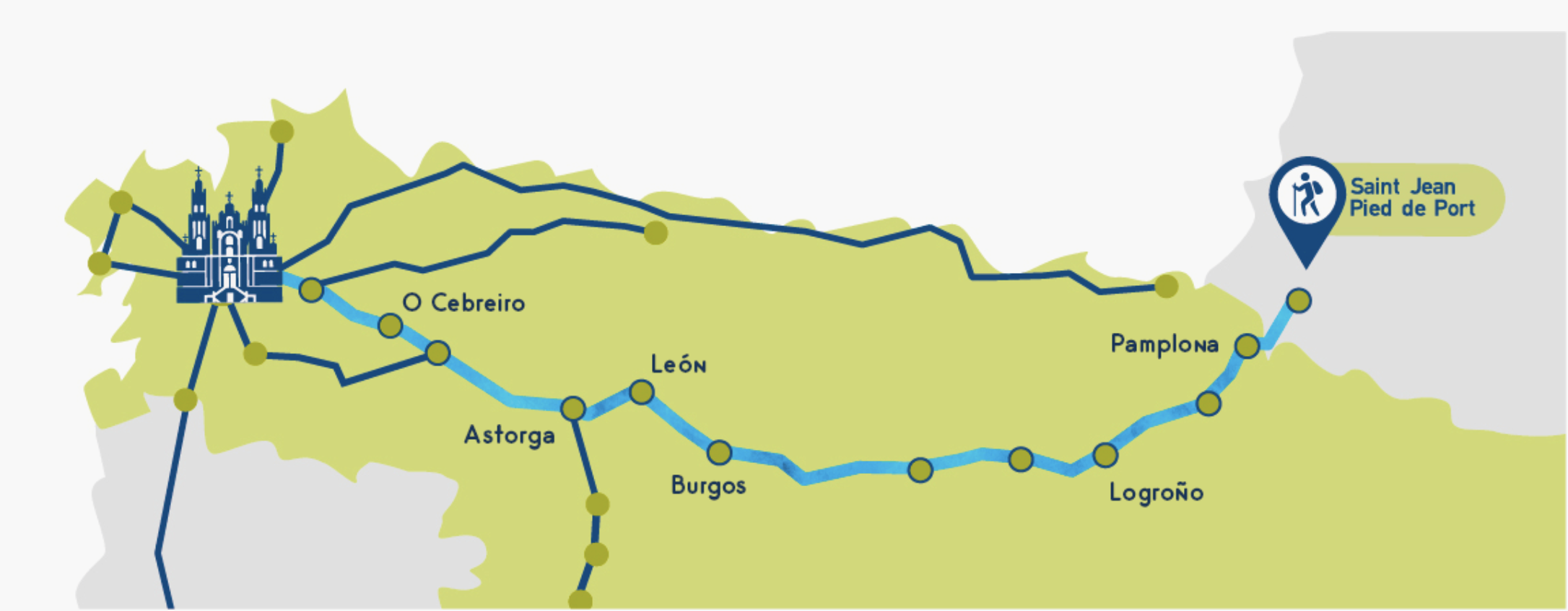 보통 사람들이 순례길 하면 생각하는 길은 프랑스 생장에서 산티아고로 이어지는 프랑스길이다. 약 800km 정도 되는 이 길은 유럽과 접해있고, 가톨릭의 저명한 인사들이 방문하면서 가장 유명한 길이 되었다. 그러나 사실 순례길은 여러 루트로 이어져 있다.