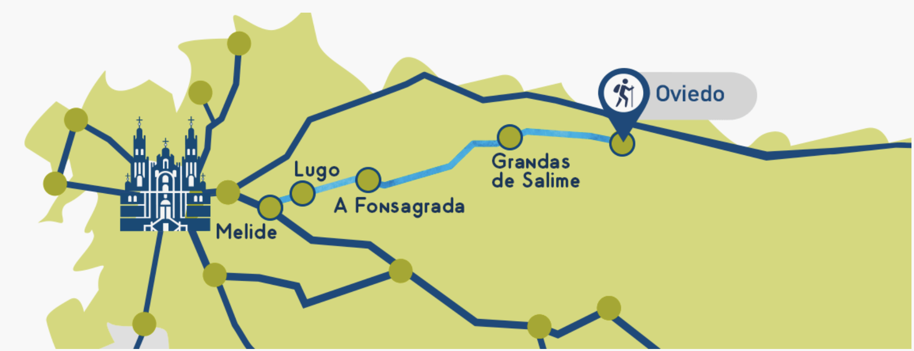 보통 사람들이 순례길 하면 생각하는 길은 프랑스 생장에서 산티아고로 이어지는 프랑스길이다. 약 800km 정도 되는 이 길은 유럽과 접해있고, 가톨릭의 저명한 인사들이 방문하면서 가장 유명한 길이 되었다. 그러나 사실 순례길은 여러 루트로 이어져 있다.