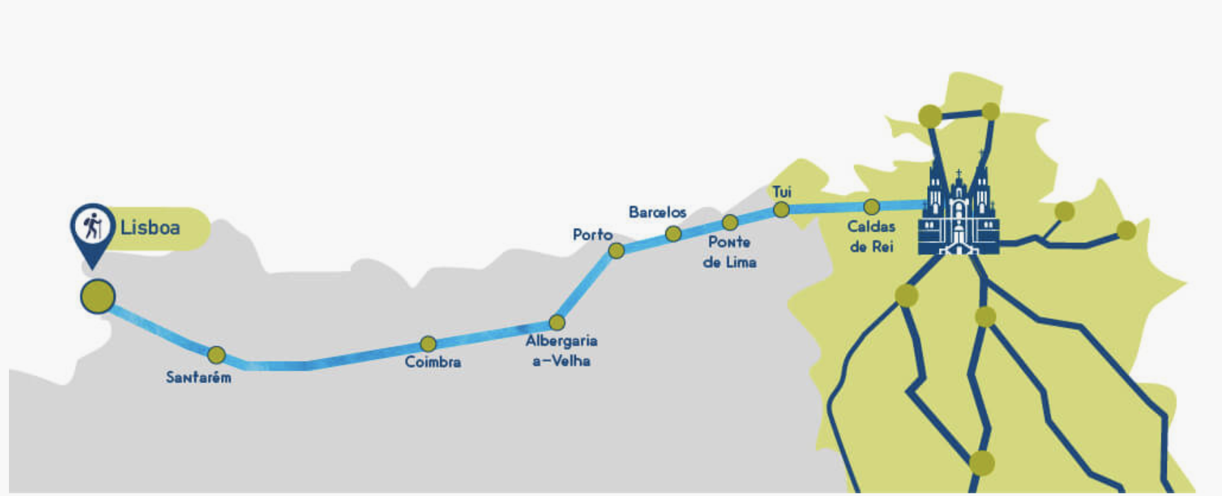 포르투갈길은 Lisboa 에서 시작되는 길로 총 620km의 길이다. 포르투 남쪽에서 시작해서 햇볕이 좋고 따뜻하다는 것이 특징이다. 걸어서는 25일 정도 소요된다고 한다.