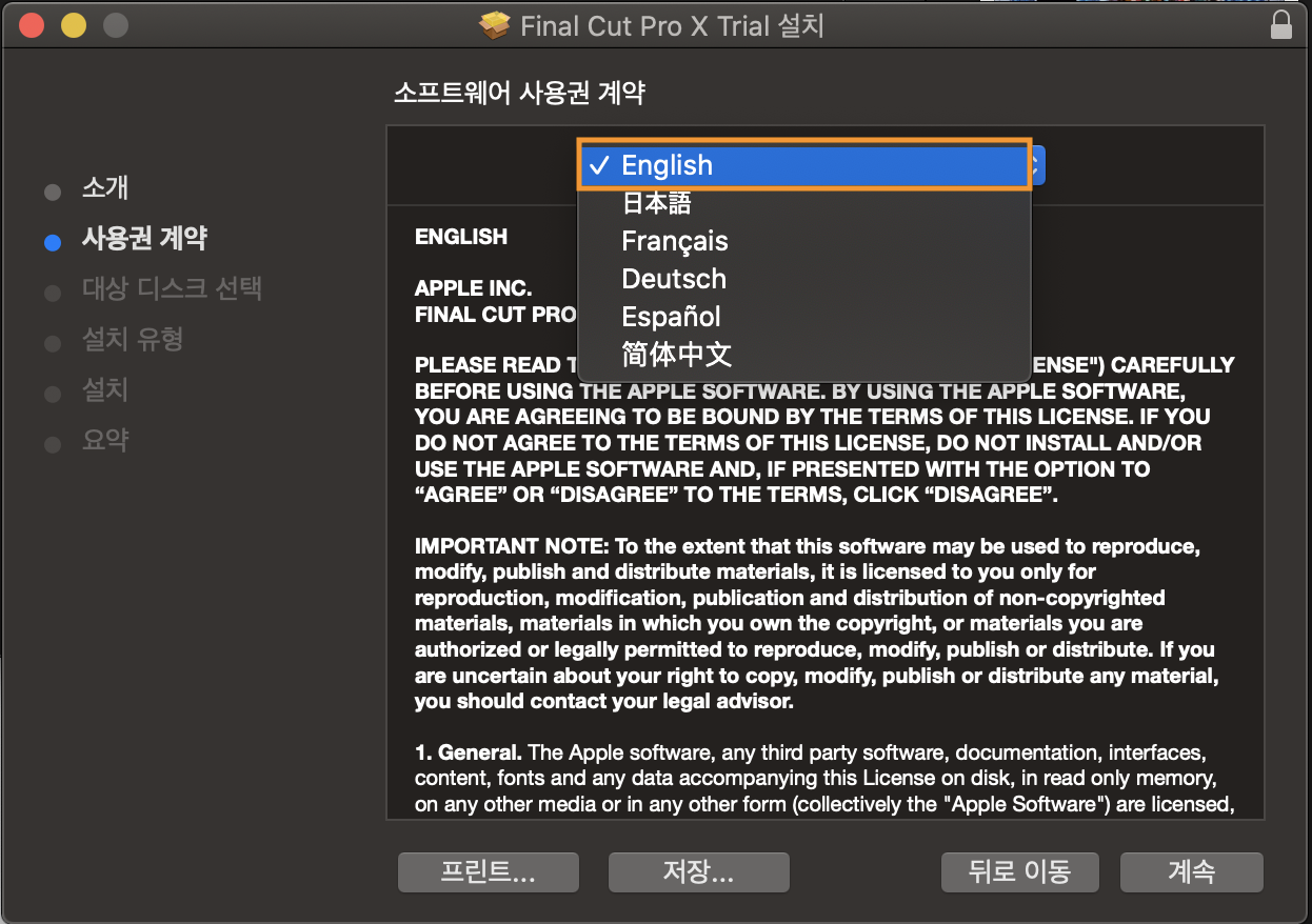 맥북에서 프로그램 설치할 때 일본어로 뜨는 경우 해결방법