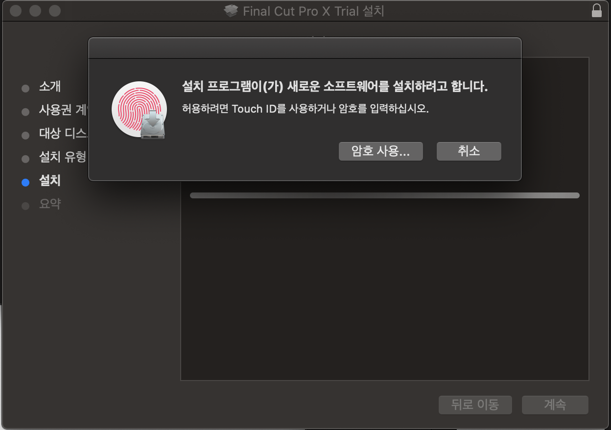 비밀번호까지 입력하시면 본격적으로 프로그램이 설치가 됩니다.