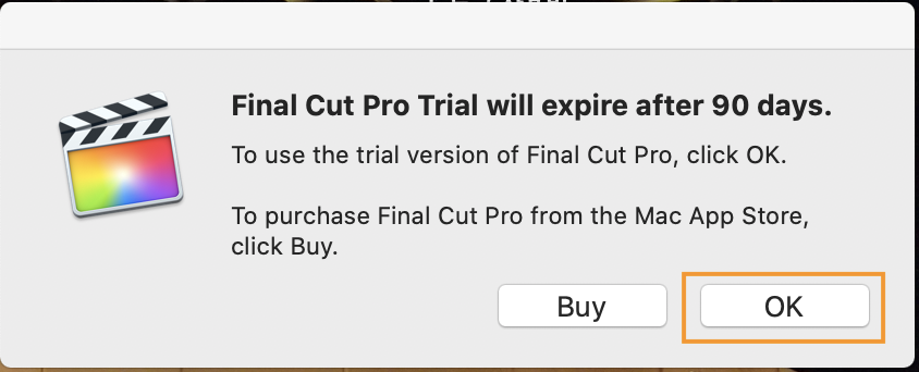 "파이널컷 프로 시험버전이 90일 후에 만료됩니다"