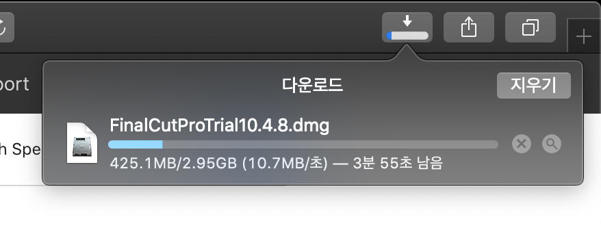다운로드가 완료되면 파인더>다운로드에 파일이 파이널컷이 파일이 보입니다.