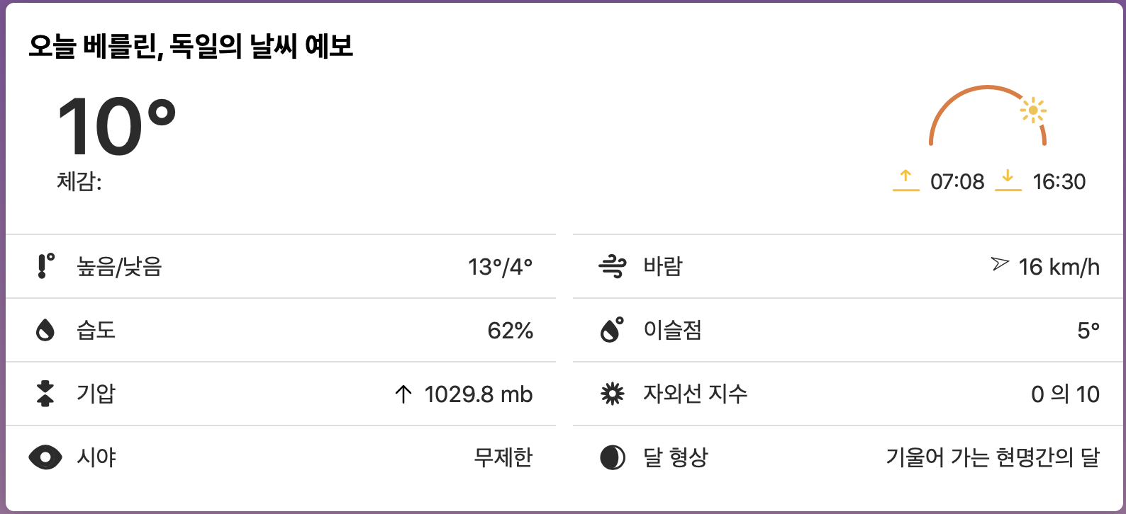 조금씩 쌀쌀해지기 시작하는 독일 베를린의 11월, 점점 겨울이 다가올수록 해가 떠 있는 시간이 줄어든다. 여름에는 밤 10시가 되어도 밖이 훤한데 반해 겨울이 깊어질수록 해가 늦게뜨고 오후 2~3시부터 벌써 어둑어둑해지기 시작해서 오후 4시면 해가 지면서 어두워진다. 이 글을 쓰고 있는 2020년 11월 4일 기준으로 일출시간이 오전 7시 8분, 일몰시간이 오후 4시 30분인 것을 알 수 있다. 만약 독일 베를린으로 여행을 계획하고 있다면, 계절에 따라 일출/일몰시간을 염두에 두고 움직이는 것이 좋다.